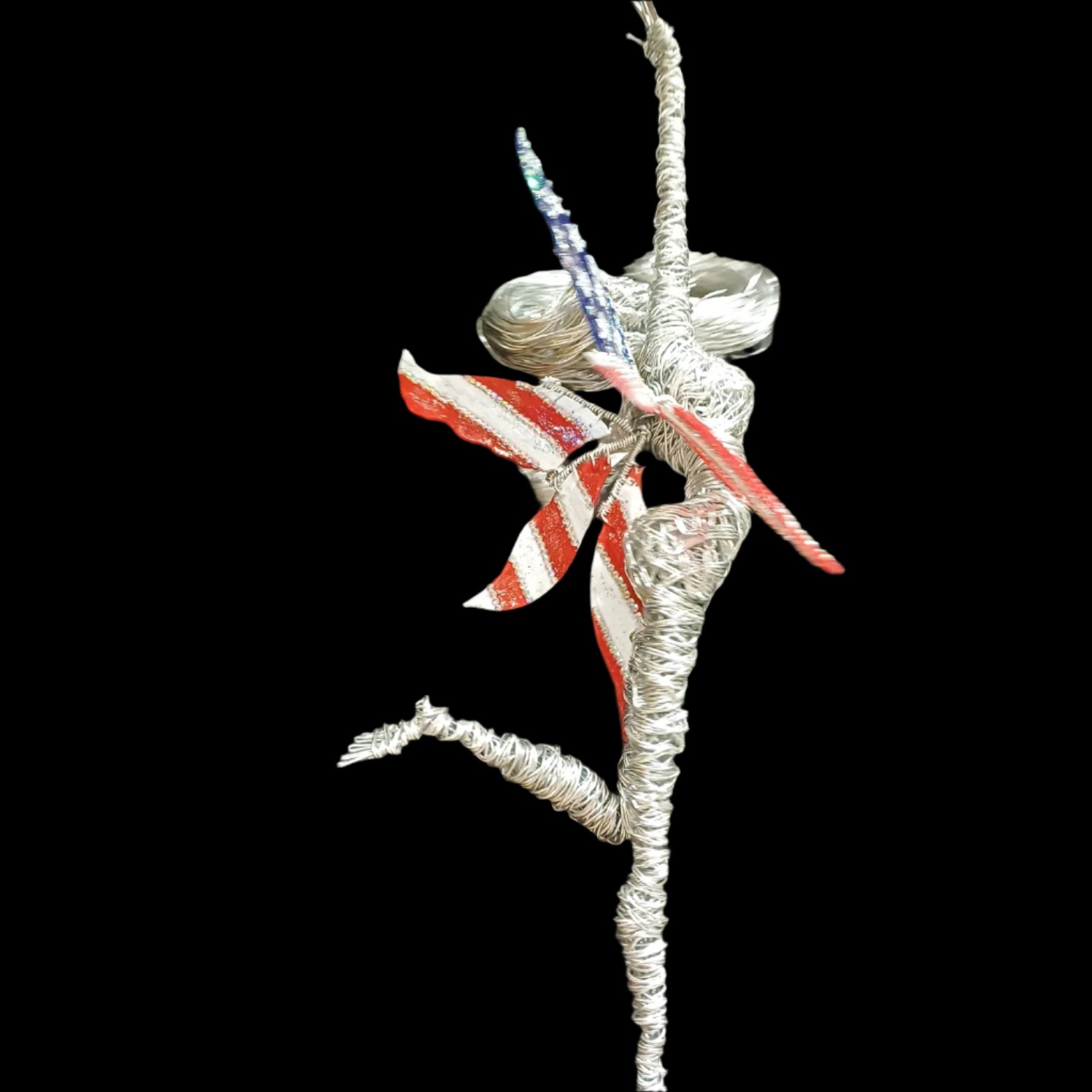 A celebration of freedom and natural beauty — this handcrafted wire fairy features shimmering USA-themed wings, adorned with beautiful crystals and herbaceous details that bring her to life. Inspired by Lady Liberty herself, she stands as a symbol of strength, grace, and magic.